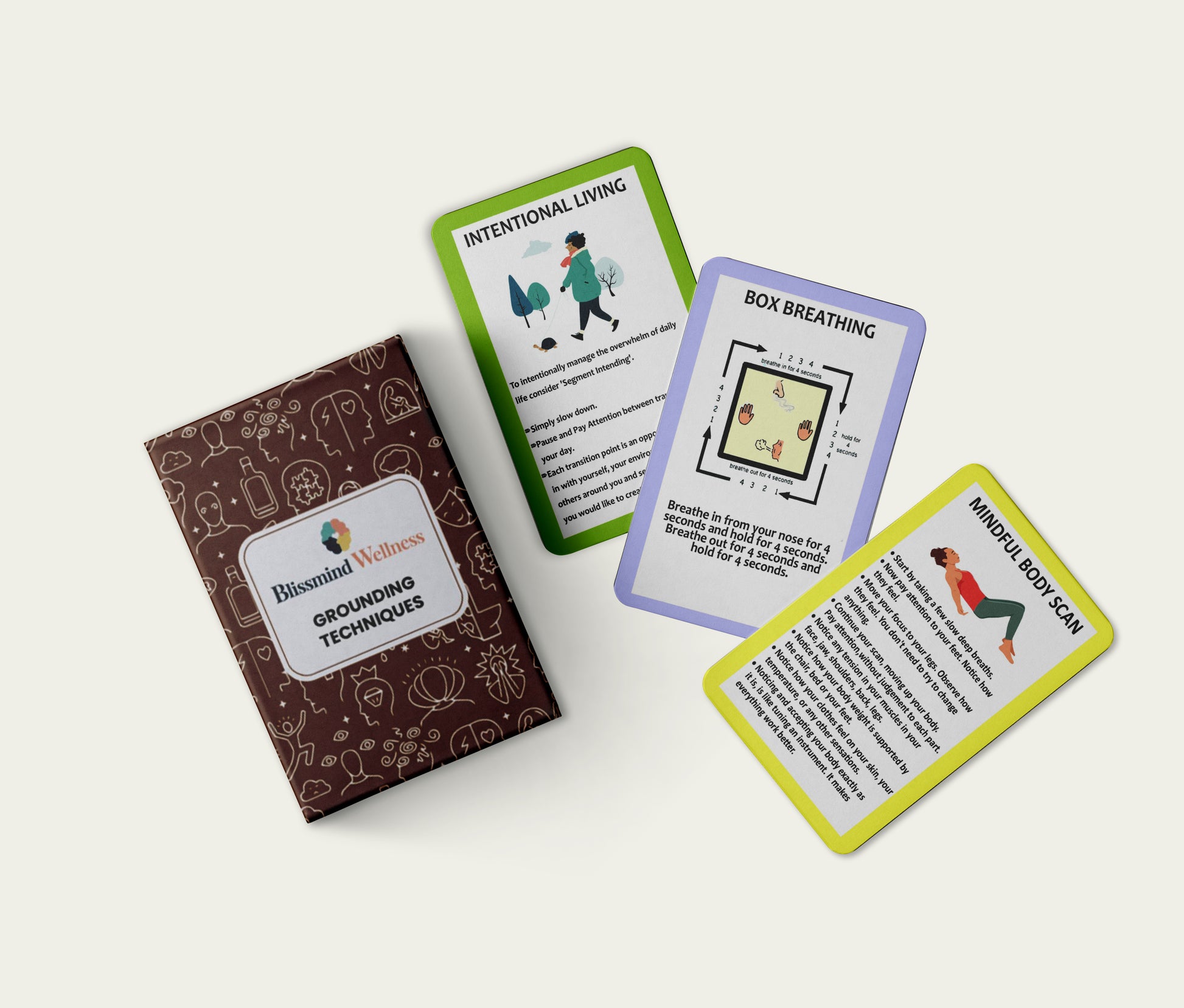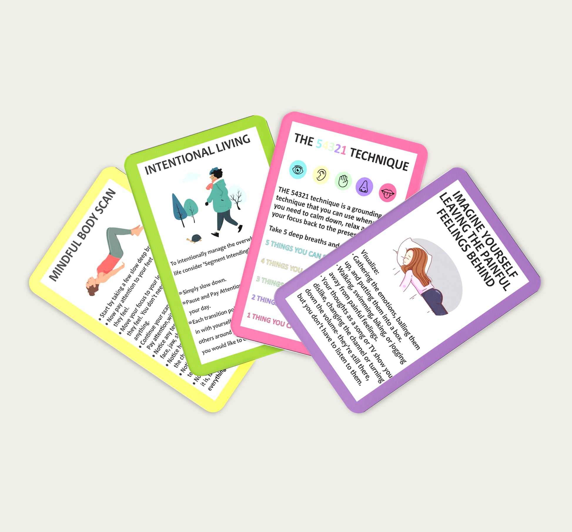Introducing our Grounding Techniques Flash Cards – a helpful way to promote mental well-being by providing grounding techniques for those times when stress and anxiety build up. Each card features a specific technique for calming the mind, re-centering focus, and getting back to a tranquil state. With easy-to-follow instructions, these cards are perfect for anyone who struggles with finding inner peace or daily stressors. By using these practical and effective techniques, you can learn to manage and reduce stress levels while increasing inner peace. The set also makes a great gift for friends and family who may benefit from the calming effects of grounding techniques. Try out our Grounding Techniques Flash Cards today and experience the ultimate sense of inner peace and tranquility.